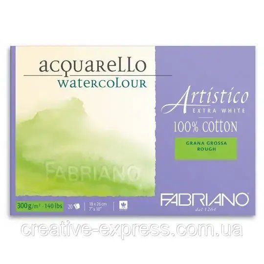 Склейка-блок для акварелі Watercolour (18х26см), 300г/м2,крупне зерно 20л, Fabriano