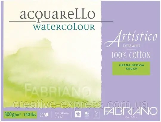 Акварельний папір Fabriano Artistico виготовляється за формою зі 100% бавовни, не містить хлору та кислот.