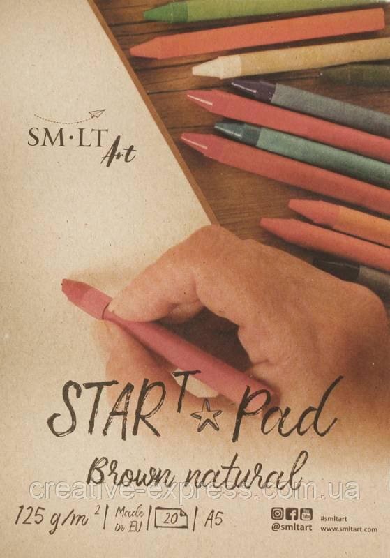 Склейка для ескізів STAR T (Kraft) А5, 125г/м2, 20л, коричневий колір, SMILTAINIS