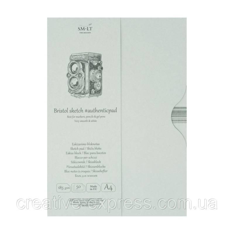 Склейка для ескізів в папці AUTHENTIC (Bristol) А4, 185г/м2, 50л, білий та гладкий папір, SMILTAINIS
