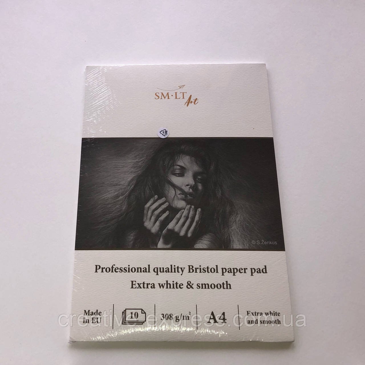 Склейка для графіки PRO CREATE А4, 308 г / метр2, 10 аркушів, екстра білий папір Bristol, SMILTAINIS. У щільній тематичній обкладинці міститься білий десяток листів самого популярного формату з візуально гладкою поверхнею, ідеально відповідає властивостям олівців, маркерів і ручок.
