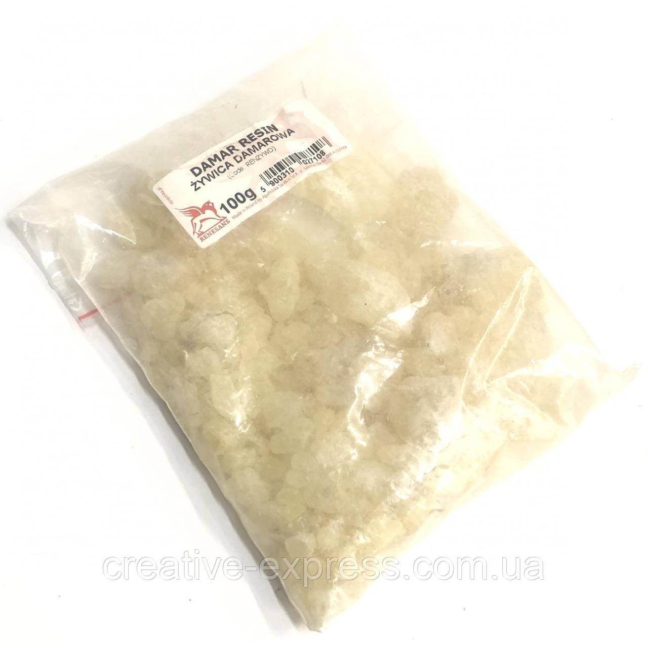 Натуральна смола Дамарова. Використовується у виробництві верніксу. Розчинна у скипидарі, бензині, вуглеводні. 100 г