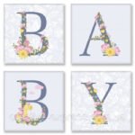 -4 полотна з кольоровим фоном на підрамниках 18*18. На кожному полотні розміщені контури букви в квітковому оформленні з номерами під розмальовку.