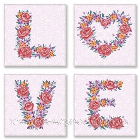 СН125 Набір для розпису за номерами. LOVE flowers 18*18 см*4 шт.
