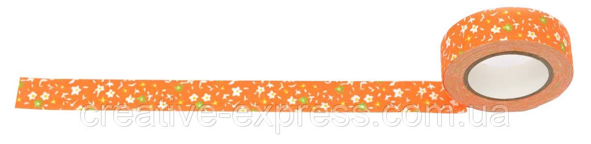 Стрічка текстильна самоклеюча “Помаранчеві квіти”, 1,5 см*5м