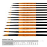 Еластична, добре контрольована синтетика рудого кольору з темним кінчиком гарно тримає форму в сухому та вологому стані. Підходять як для нанесення тонких ліній, так і для створення плавних переходів, зафарбуванню великих площ, для змішування фарб.