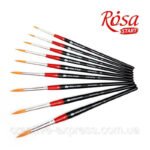 Пензель круглий ROSA START з волоса синтетики. Стандартна виставка робочої частини. Рижа синтетика, відрізняється винятковою еластичністю і пружністю волосяного пучка. Призначається для нанесення фарби лінією з незмінною товщиною, або лінією, що варіюється по товщині. Це чудовий пензель служити для малюнка, створення фактури, роботи над деталями.Пензель уявлень на короткій ручці.