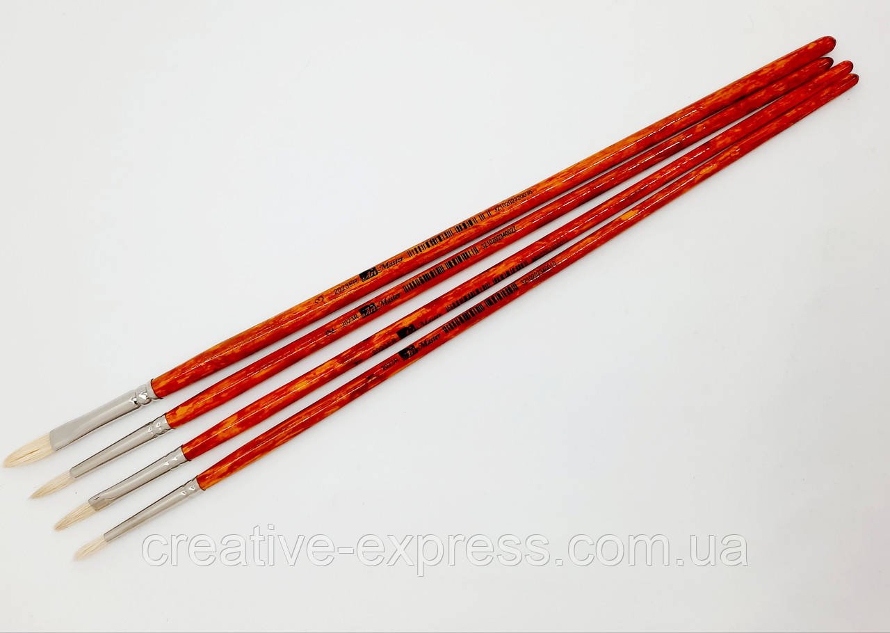 Кисть з щетини кругла з довгою ручкою для живопису – виготовляються з натурального свинячого волоса. Дуже добре підходять для роботи олійними, темперними та акриловими густими фарбами. Якщо починаючому художникові необхідно оволодіти базовими навичками, то кисті з щетини це кращий вибір. Вони роблять структурні чіткі мазки. Професійні художники також цінують такі кисті за високу пружність, зносостійкість, легкість в роботі. І початківці і профі оцінять також невисоку ціну.