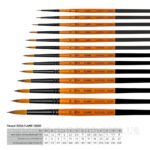 Еластична, добре контрольована синтетика рудого кольору з темним кінчиком гарно тримає форму в сухому та вологому стані. Підходять як для нанесення тонких ліній, так і для створення плавних переходів, зафарбуванню великих площ, для змішування фарб.