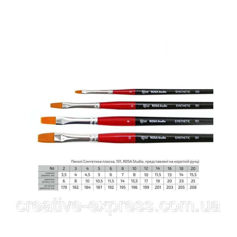 Головна Пензлі та мастихіни Пензлі з синтетики волосу Синтетика плоска, 101, №14, к.р. пензель ROSA Studio