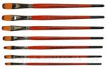 Пензель плоский з ворсу синтетики. Руда синтетика імітація колонка, відрізняється винятковою еластичністю і пружністю волосяного пучка. Таким пензлем наносять широкі, рівні мазки, ним добре працювати на великих ділянках полотна. Завдяки густоті і довжині ворсу пензель утримує багато фарби. Пензель уявлень на короткій ручці.