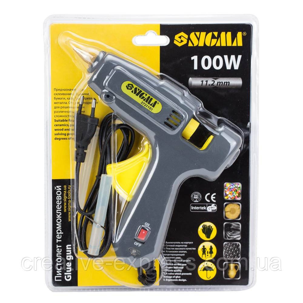 Пістолет термоклеєвий з вимикачем Ø11.2мм 100Вт SIGMA (2721101) відмінно підійде для тих, хто займається створенням всіляких аплікацій та інших декоративних виробів шляхом склеювання паперу, картону, дерева і навіть металу і кераміки. Здатний виконати завдання різного ступеня складності з даними матеріалами. Характеристики та особливості: робоча температура від 190ºC до 230ºC, має мережевий індикатор та вимикач, який дозволяє не відключати клейовий пістолет з мережі, робити перерви в роботі, корпус зроблений з високоякісного пластику, який може витримувати високі температури. Для запобігання мимовільного витікання клею на моделі встановлений запобіжний клапан а камера нагрівального елементу повністю літа і виготовляється з надійного і високоякісного матеріалу, що надає стійкість під час роботи при впливі високих температур.