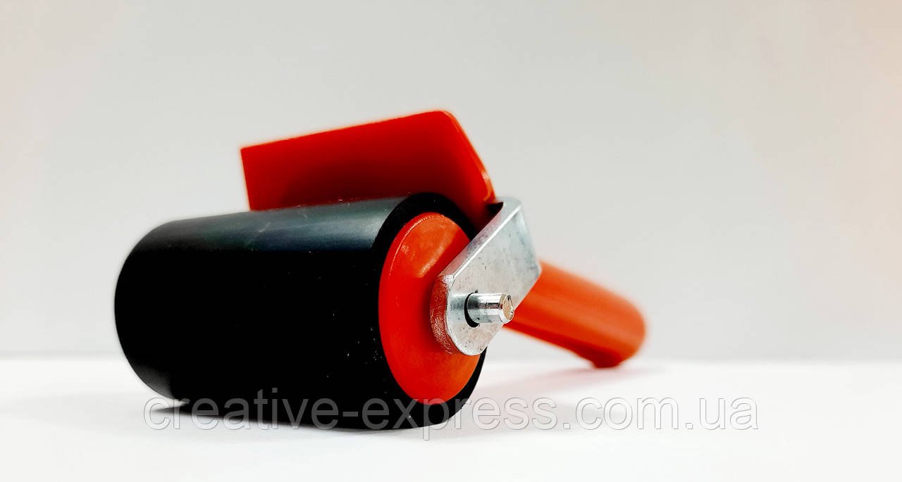 Гумовий Валик на металевих кронштейнах. Діаметр валика – 2.7 див., Довжина ручки – 14 див. З урахуванням виносу. 3 віді валиків: великий – довжина валика 20,5 см середній – довжина валика 10,5 см маленький – довжина валика 5 см Основне застосування валика в ліногравюри, для щільної накочення листа до кліше. Альо так само валик можна використовувати: при декупажу для приклеювання стрічок і плівок як інструмент для щільної накочення різних ізоляційних матеріалів і якісного розгладження швів Так само можна нанести різцями візерунок на гумову поверхню валика. Таким чином Ви отримаєте фактурний валик для нанесення різних фактур на поверхню.