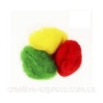 З вовняної пряжі апаратного прядіння легко створити скульптурні роботи, при шліфовці фінішної голкою, при цьому проколи від голки стають практично не помітні. Біжутерія з такою вовни відрізняється не «кудлатою» поверхнею, а гладкою. Палітра ствоновіть – 35 кольорів Вовна кардочесана вагою 10г і 40г. в блістерній упаковці.