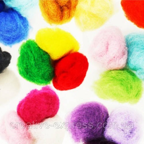 З вовняної пряжі апаратного прядіння легко створити скульптурні роботи, при шліфовці фінішної голкою, при цьому проколи від голки стають практично не помітні. Біжутерія з такою вовни відрізняється не «кудлатою» поверхнею, а гладкою. Палітра ствоновіть – 35 кольорів Вовна кардочесана вагою 10г і 40г. в блістерній упаковці.